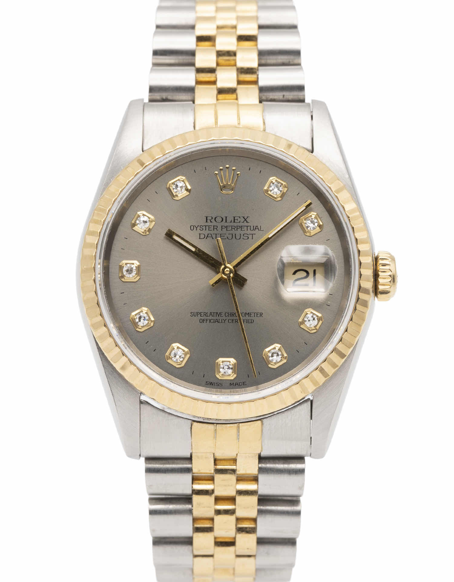 Discover the Rolex Datejust 36 (2003), where innovation meets timeless style. Crafted in two tone yellow gold, its grey dial adds flair and functionality. With a 36Mm case, it effortlessly balances modern design and classic charm.