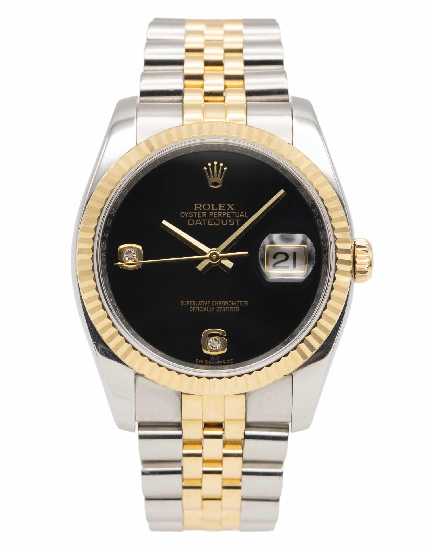 Discover the Rolex Datejust 36 (2013), where innovation meets timeless style. Crafted in two tone yellow gold, its black dial adds flair and functionality. With a 36Mm case, it effortlessly balances modern design and classic charm.