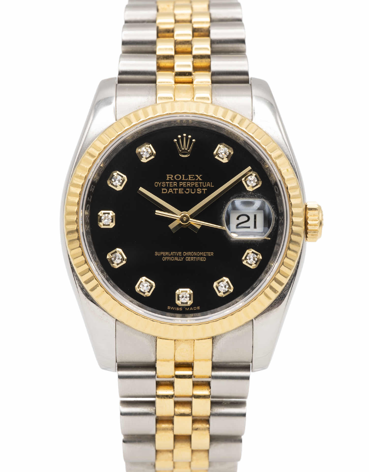 Discover the Rolex Datejust 36 (2014), where innovation meets timeless style. Crafted in two tone yellow gold, its black dial adds flair and functionality. With a 36mm case, it effortlessly balances modern design and classic charm.