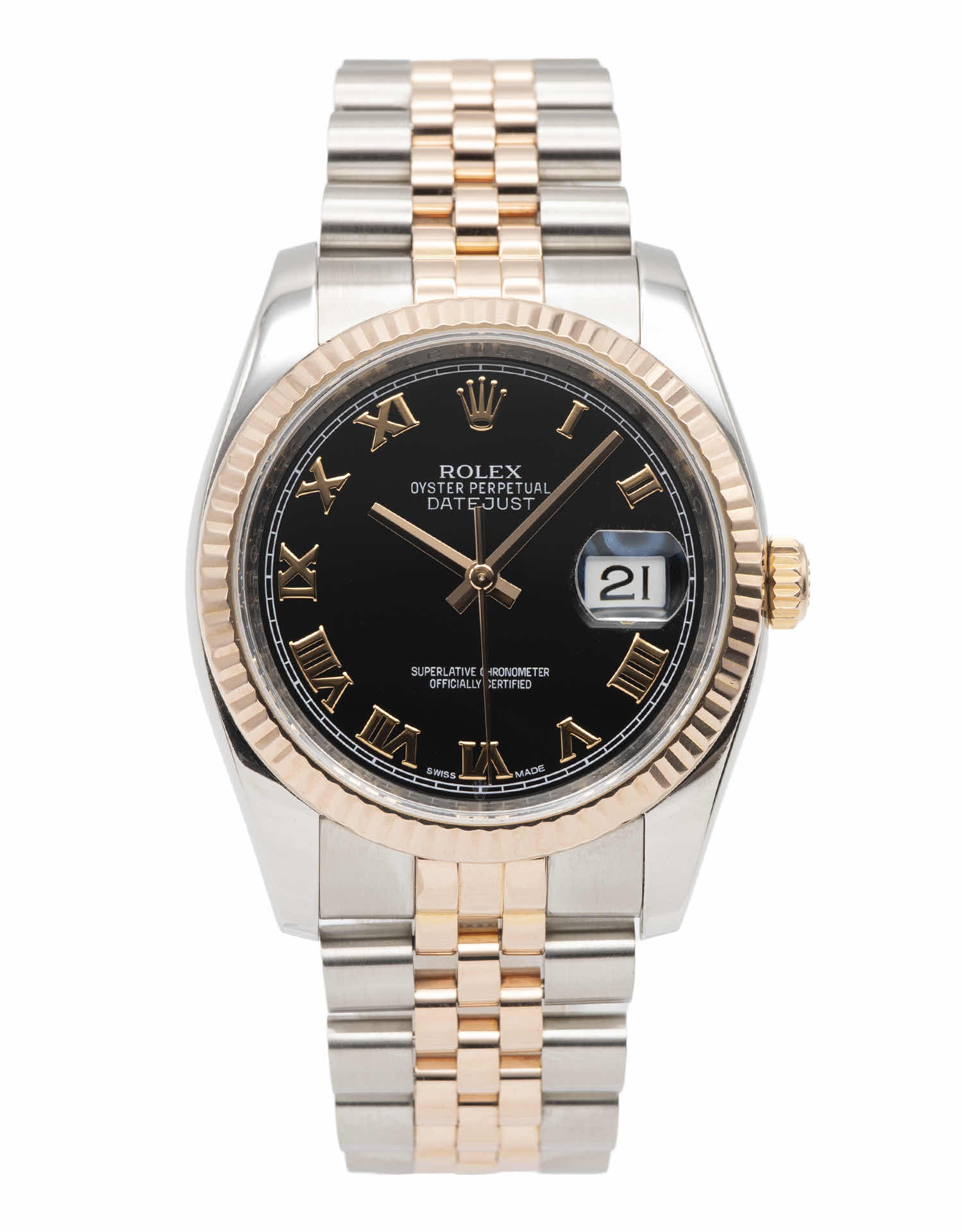 Discover the Rolex Datejust 36 (2014), where innovation meets timeless style. Crafted in two tone rose gold, its black dial adds flair and functionality. With a 36mm case, it effortlessly balances modern design and classic charm.
