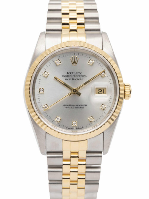 Discover the Rolex Datejust 36 (2016), where innovation meets timeless style. Crafted in two tone yellow gold, its black dial adds flair and functionality. With a 36mm case, it effortlessly balances modern design and classic charm.