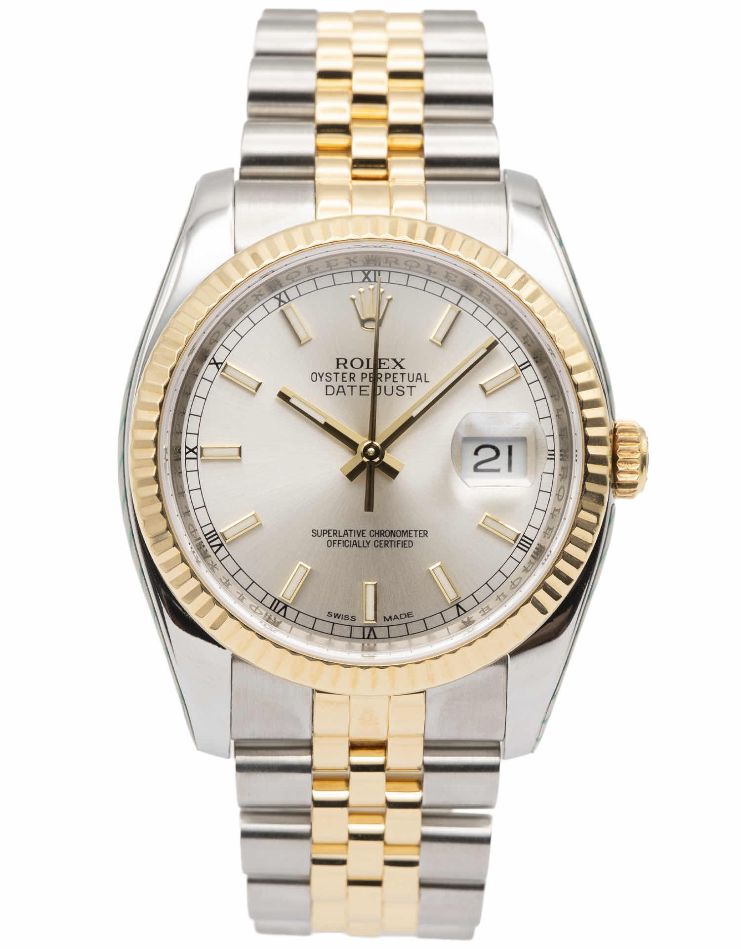 Discover the Rolex Datejust 36 (2018), where innovation meets timeless style. Crafted in two tone yellow gold, its silver dial adds flair and functionality. With a 36mm case, it effortlessly balances modern design and classic charm.