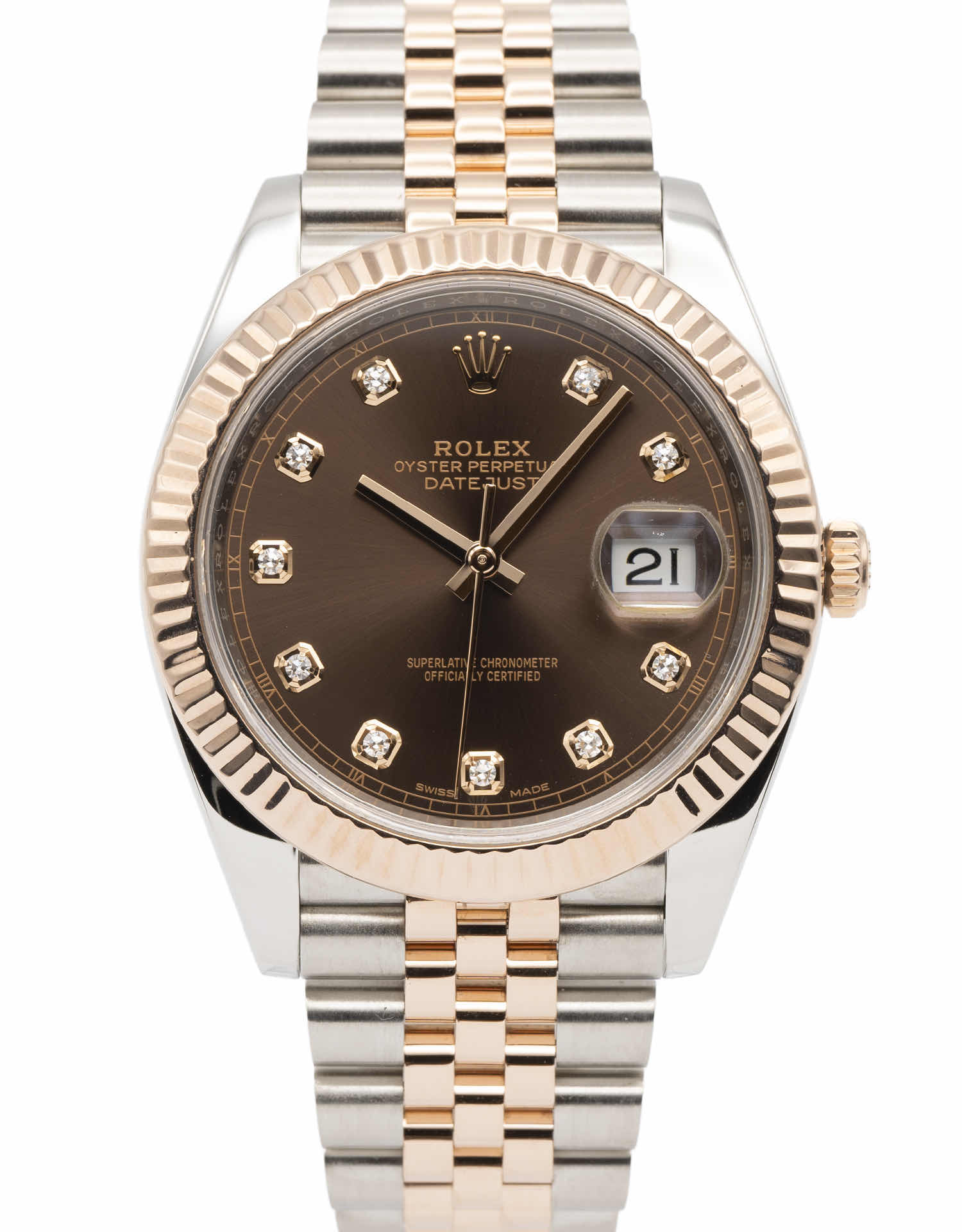 Discover the Rolex Datejust 41 (2017), where innovation meets timeless style. Crafted in two tone rose gold, its chocolate dial adds flair and functionality. With a 41mm case, it effortlessly balances modern design and classic charm.