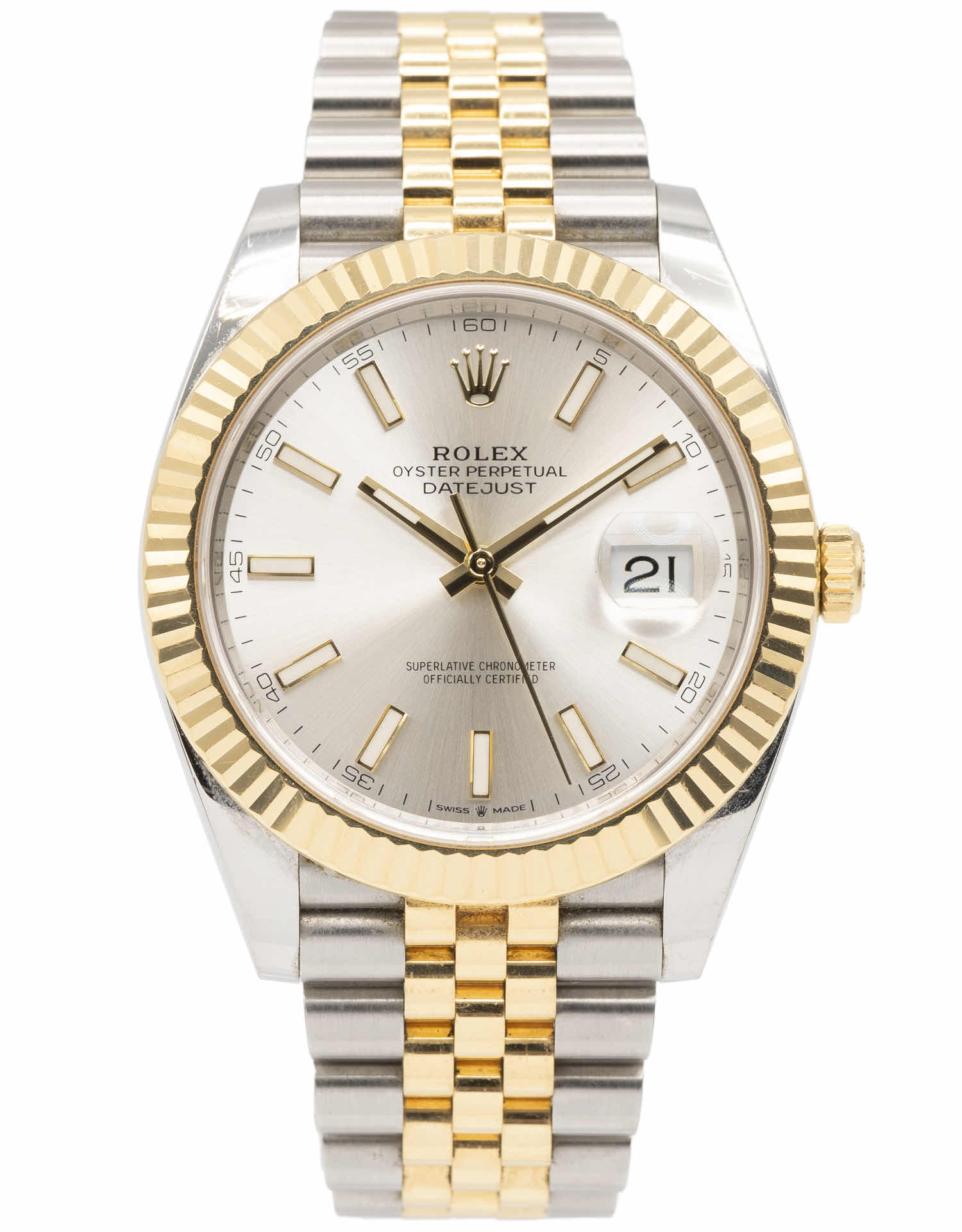 Discover the Rolex Datejust 41 (2020), where innovation meets timeless style. Crafted in two tone yellow gold, its silver dial adds flair and functionality. With a 41Mm case, it effortlessly balances modern design and classic charm.
