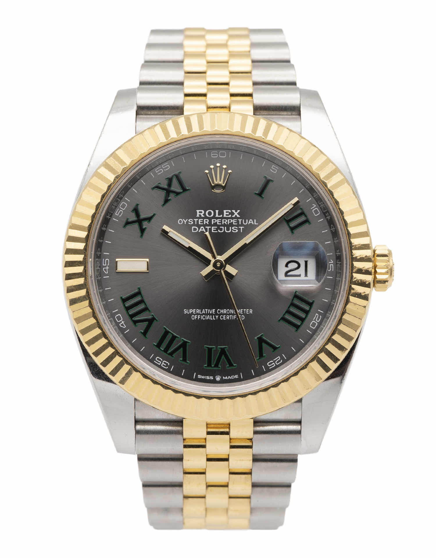 Discover the Rolex Datejust 41 (2020), where innovation meets timeless style. Crafted in two tone yellow gold, its grey dial adds flair and functionality. With a 41mm case, it effortlessly balances modern design and classic charm.