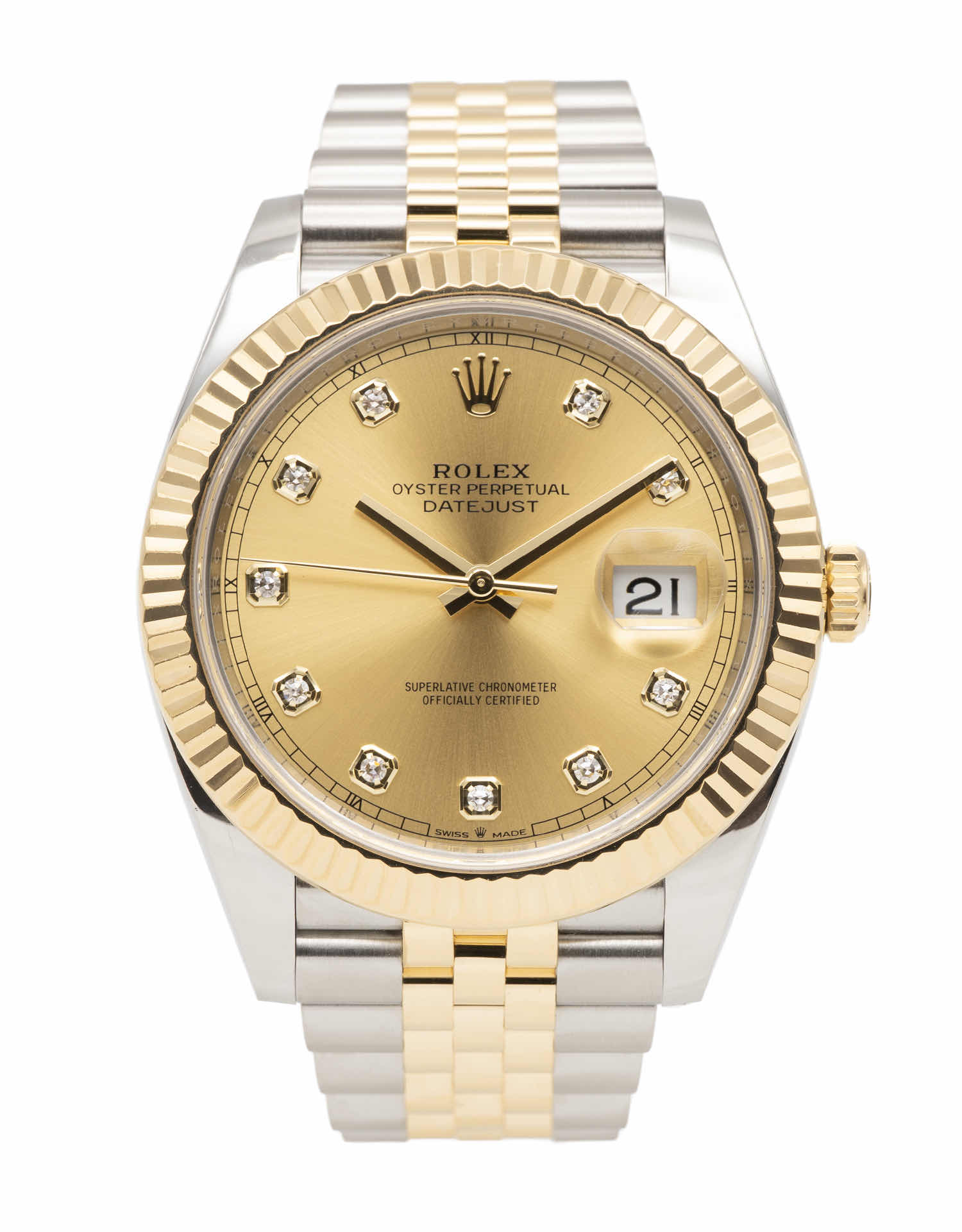 Discover the Rolex Datejust 41 (2021), where innovation meets timeless style. Crafted in two tone yellow gold, its champagne dial adds flair and functionality. With a 41mm case, it effortlessly balances modern design and classic charm.