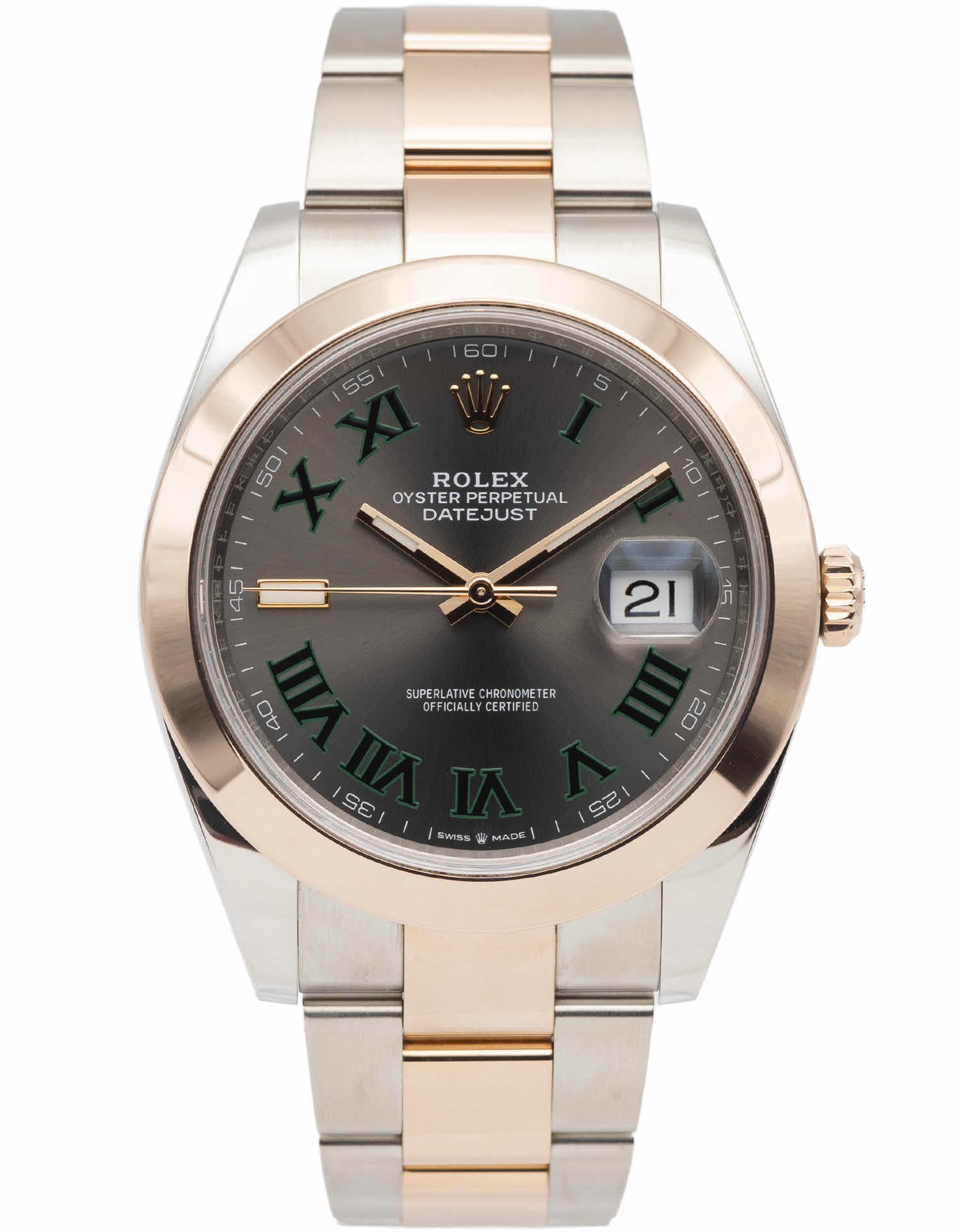 Discover the Rolex Datejust 41 (2021), where innovation meets timeless style. Crafted in two tone rose gold, its dark grey dial adds flair and functionality. With a 41Mm case, it effortlessly balances modern design and classic charm.