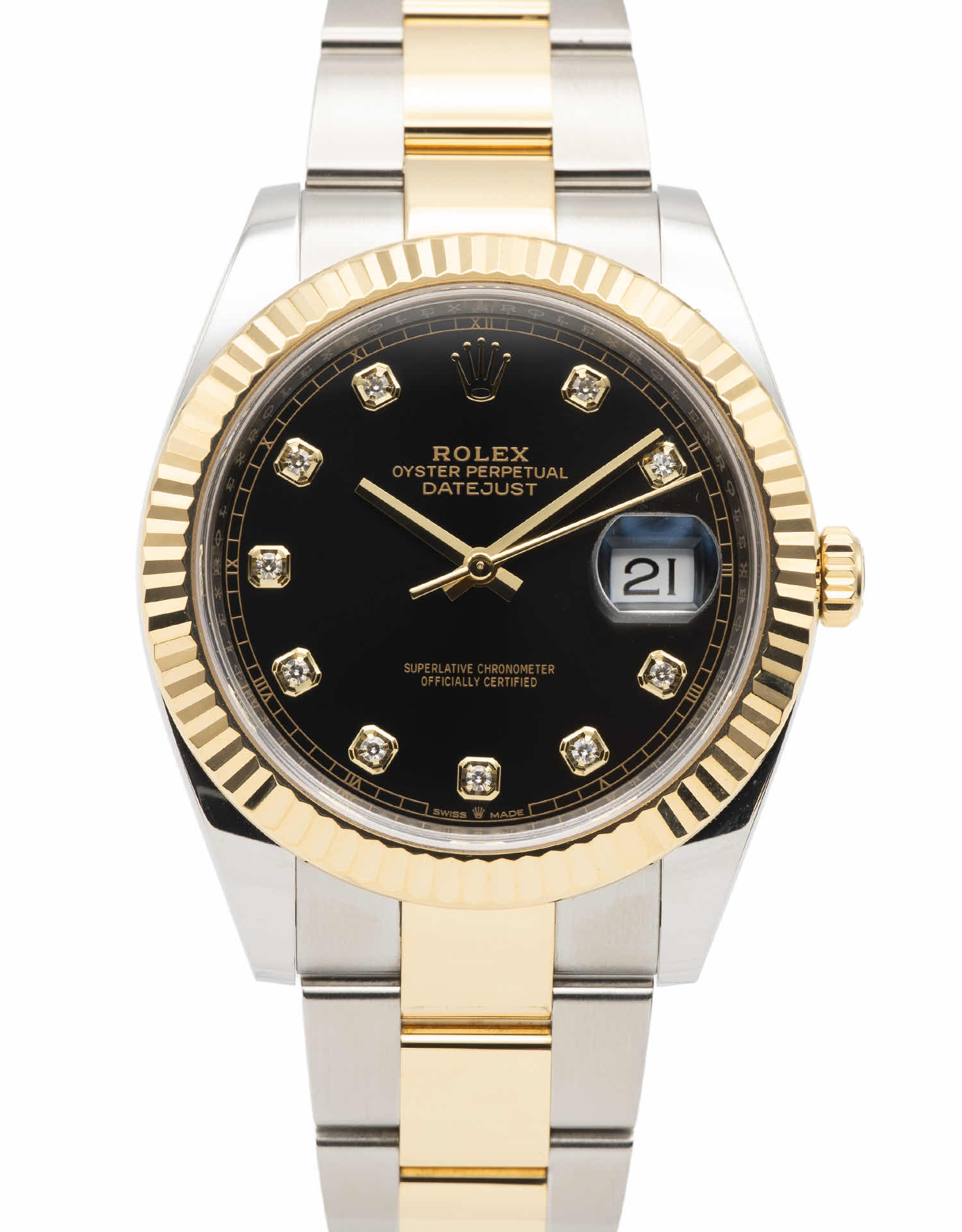 Discover the Rolex Datejust 41 (2023), where innovation meets timeless style. Crafted in two tone yellow gold, its black dial adds flair and functionality. With a 41mm case, it effortlessly balances modern design and classic charm.