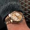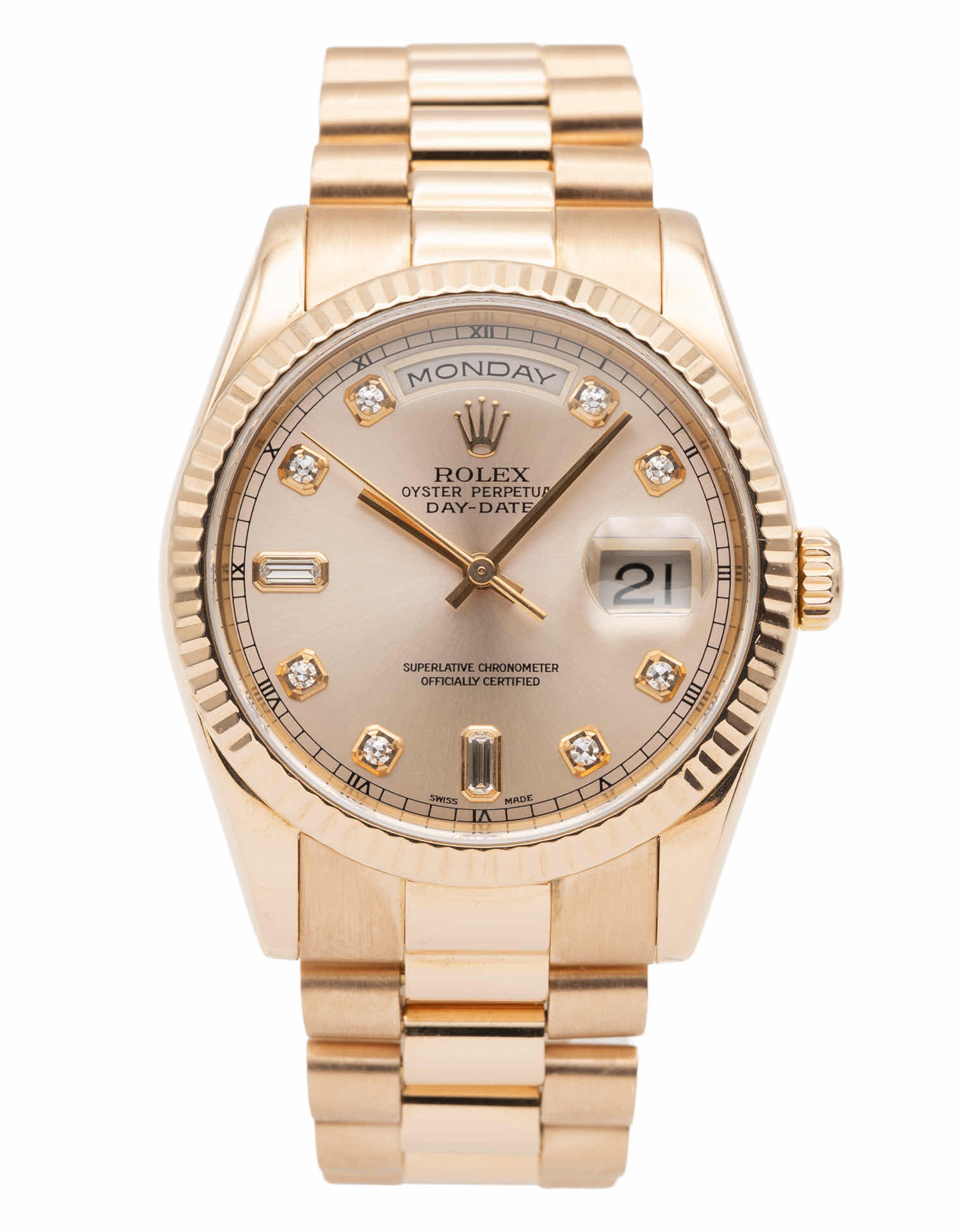 Discover the Rolex Day-Date 36Mm (2001), where innovation meets timeless style. Crafted in rose gold, its rose dial adds flair and functionality. With a 36mm case, it effortlessly balances modern design and classic charm.
