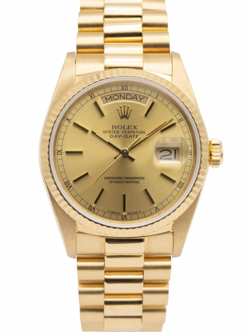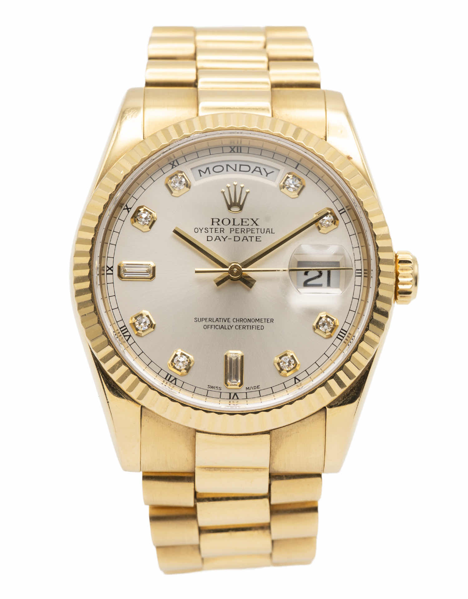 Discover the Rolex Day-Date 36Mm (2005), where innovation meets timeless style. Crafted in yellow gold, its silver dial adds flair and functionality. With a 36mm case, it effortlessly balances modern design and classic charm.