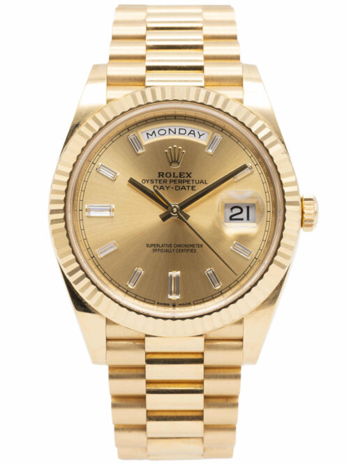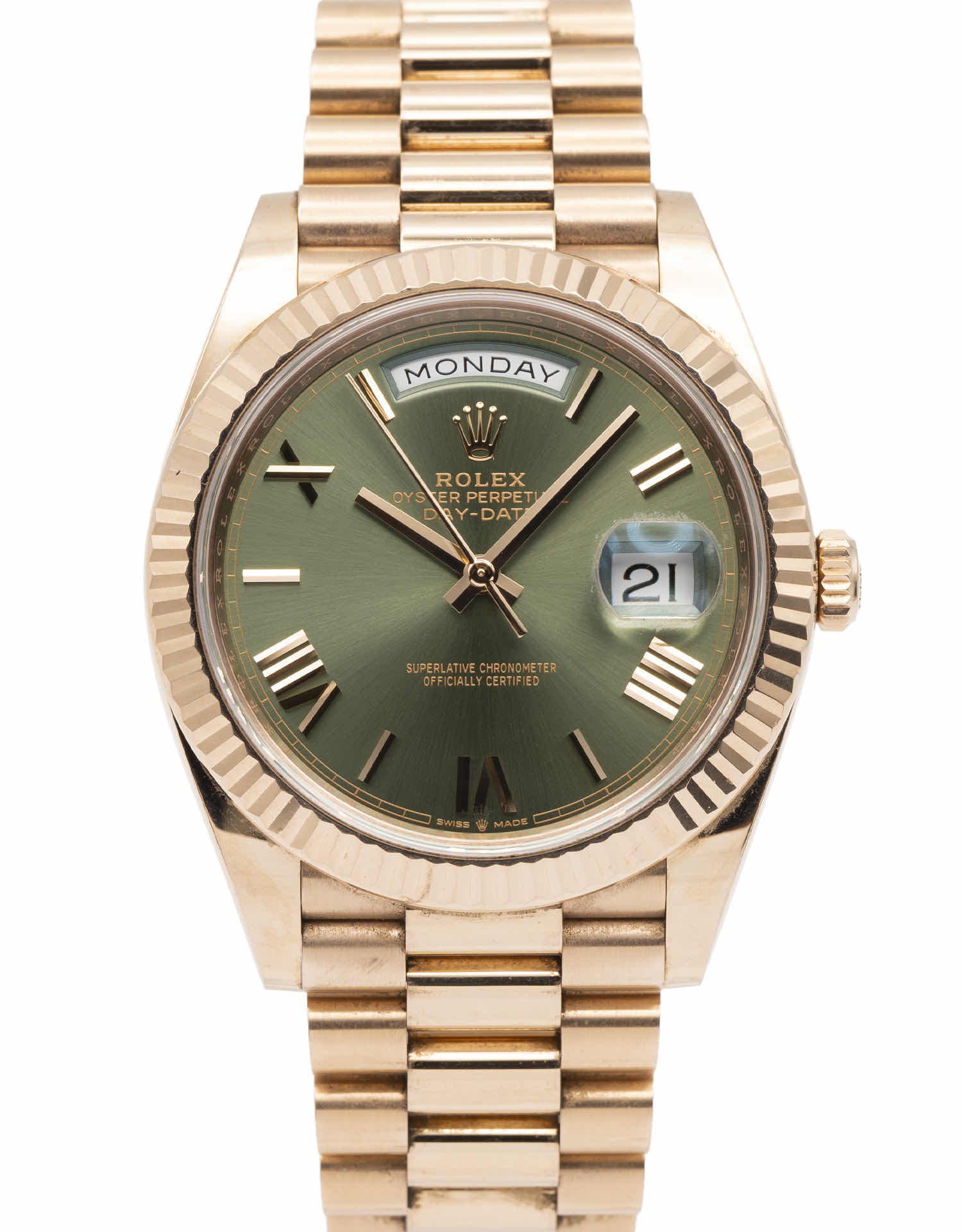 Discover the Rolex Day-Date 40Mm (2021), where innovation meets timeless style. Crafted in rose gold, its olive green dial adds flair and functionality. With a 40Mm case, it effortlessly balances modern design and classic charm.