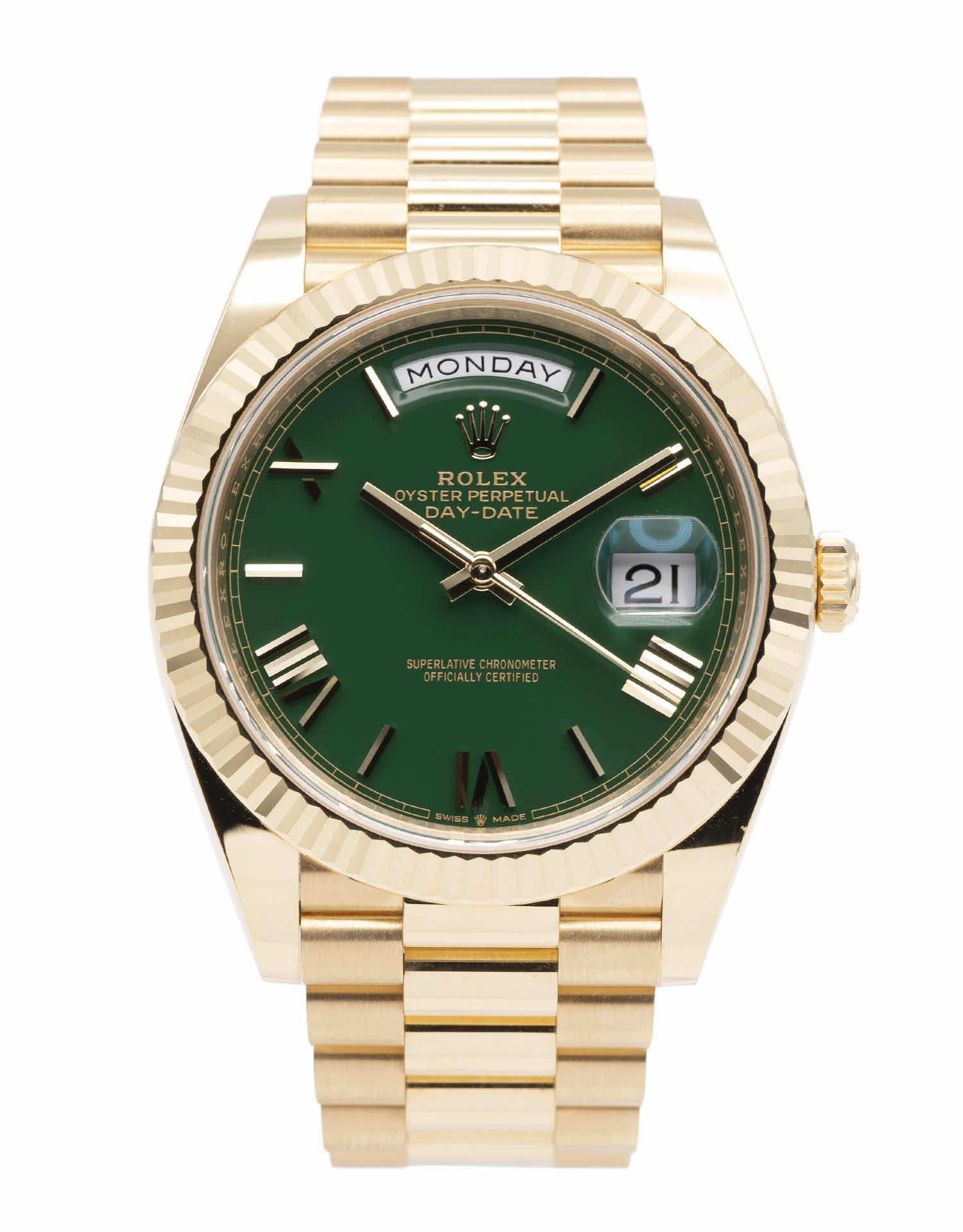 Discover the Rolex Day-Date 40Mm (2024), where innovation meets timeless style. Crafted in yellow gold, its green dial adds flair and functionality. With a 40MM case, it effortlessly balances modern design and classic charm.