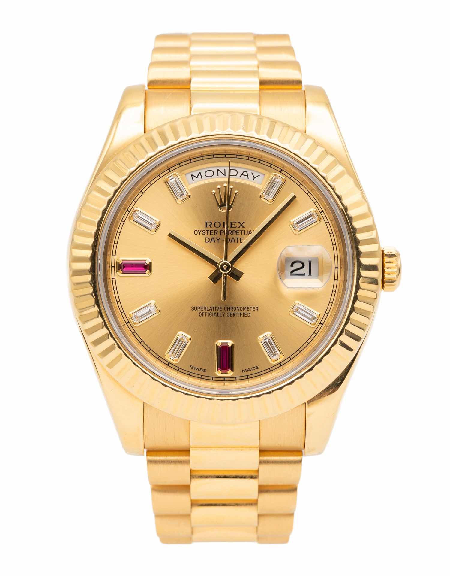 Discover the Rolex Day-date 41mm (2016), where innovation meets timeless style. Crafted in yellow gold, its champagne dial adds flair and functionality. With a 41mm case, it effortlessly balances modern design and classic charm.