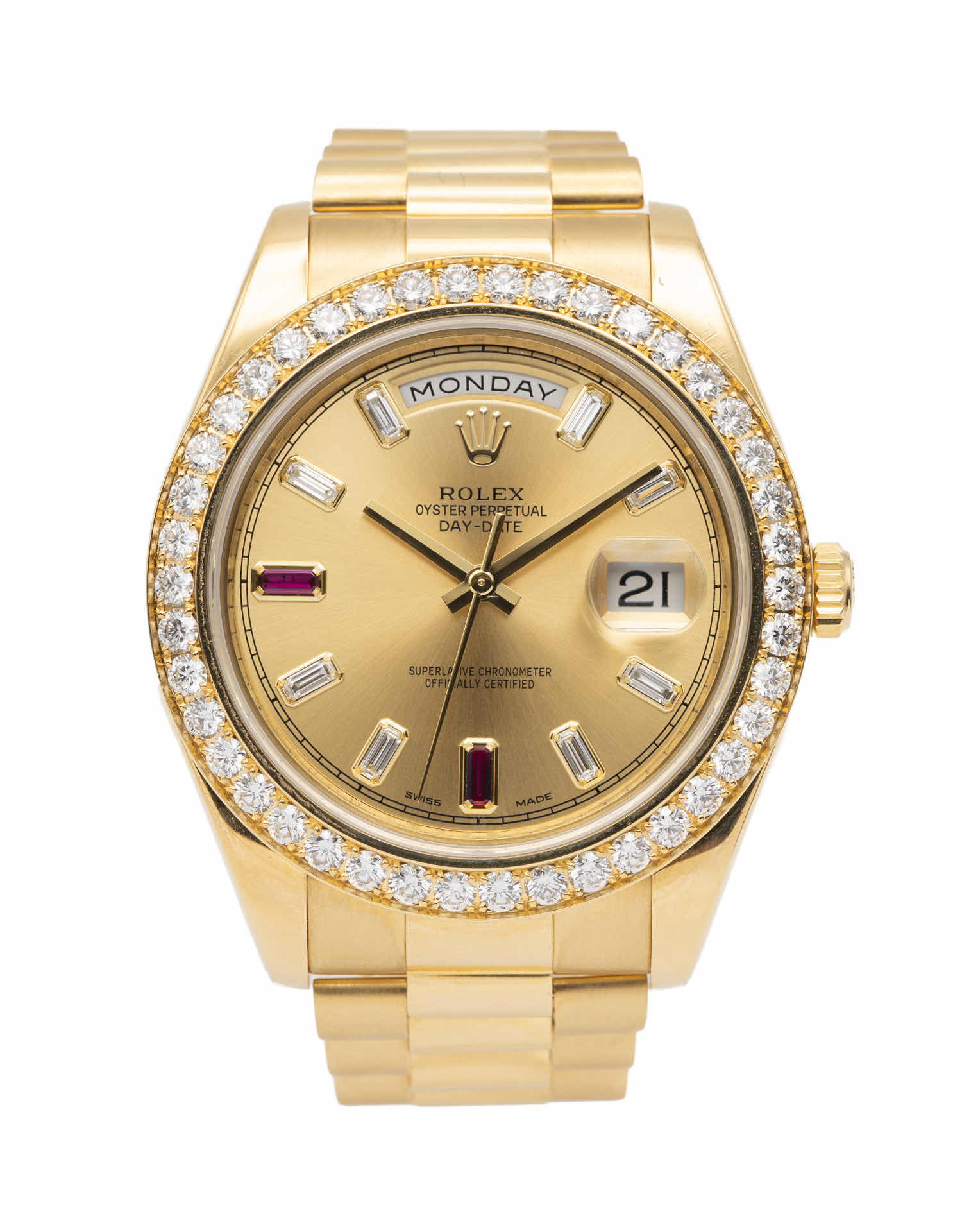 Discover the Rolex Day-date 41mm (2012), where innovation meets timeless style. Crafted in yellow gold, its champagne dial adds flair and functionality. With a 41mm case, it effortlessly balances modern design and classic charm.