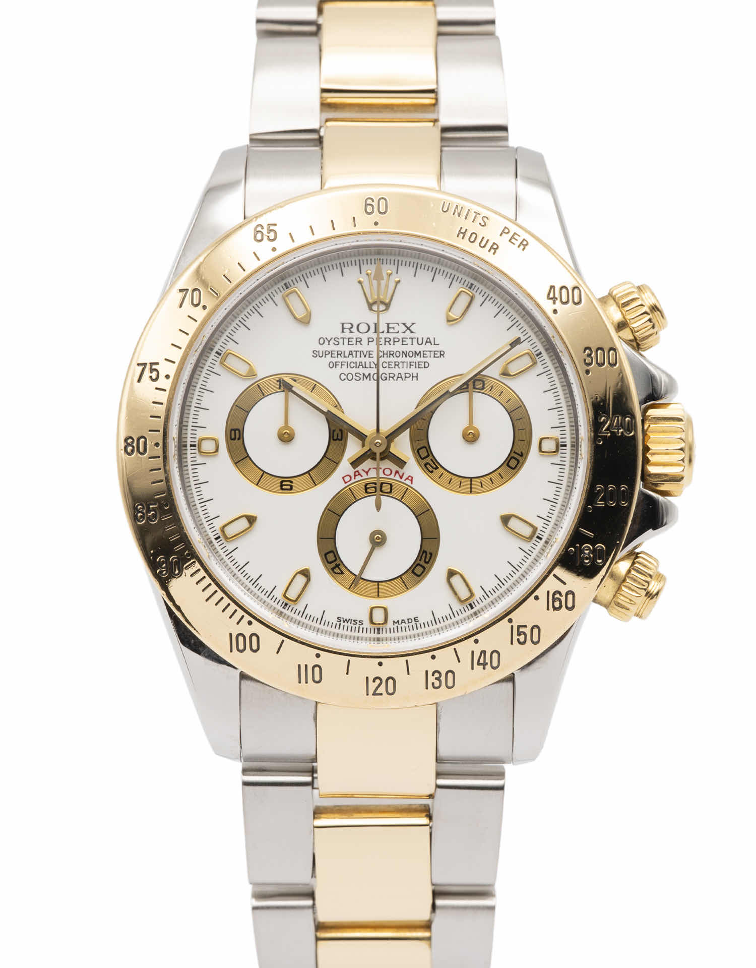 Discover the Rolex Daytona (2003), where innovation meets timeless style. Crafted in two tone yellow gold, its white dial adds flair and functionality. With a 40MM case, it effortlessly balances modern design and classic charm.