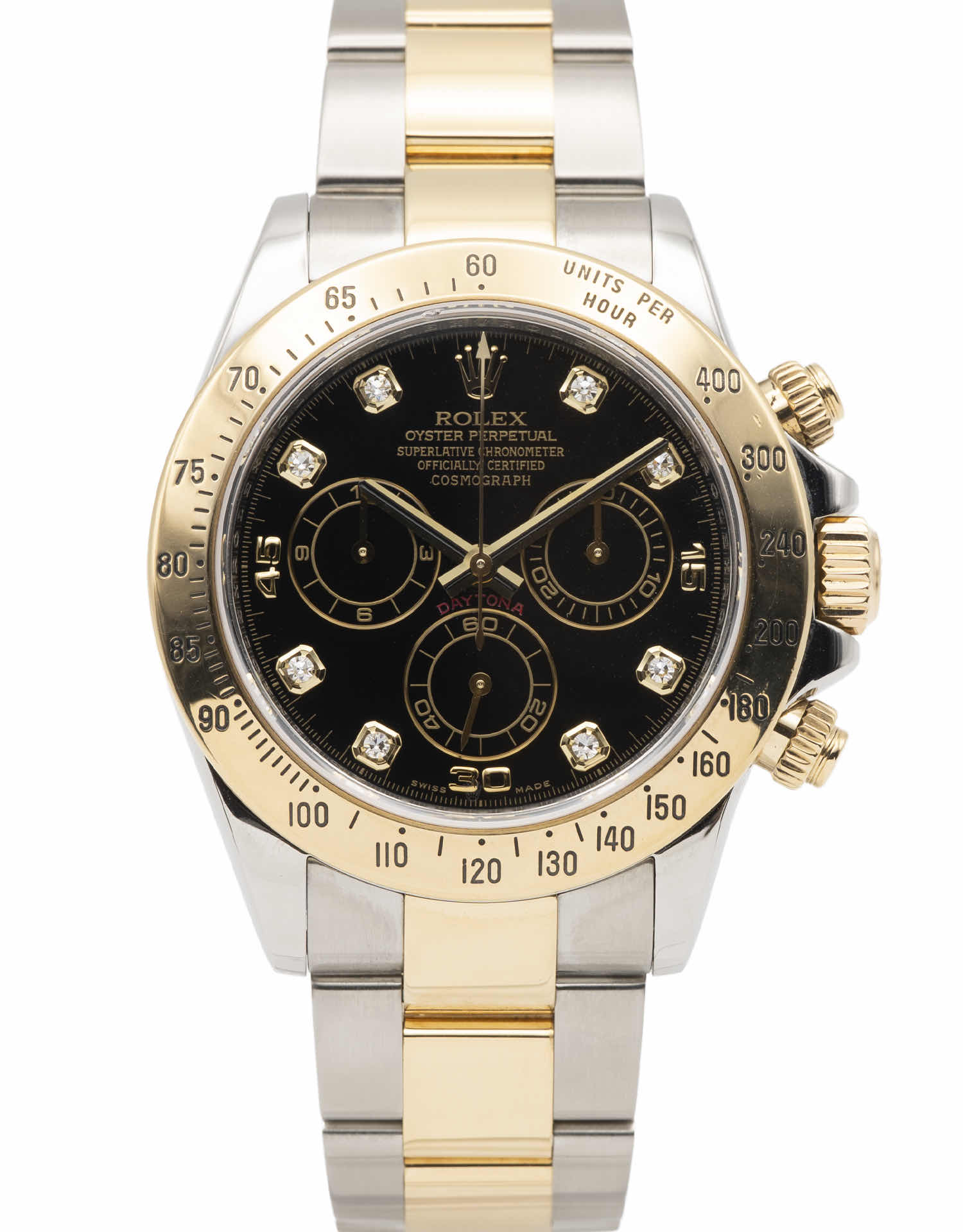 Discover the Rolex Daytona (2011), where innovation meets timeless style. Crafted in two tone yellow gold, its black dial adds flair and functionality. With a 40MM case, it effortlessly balances modern design and classic charm.
