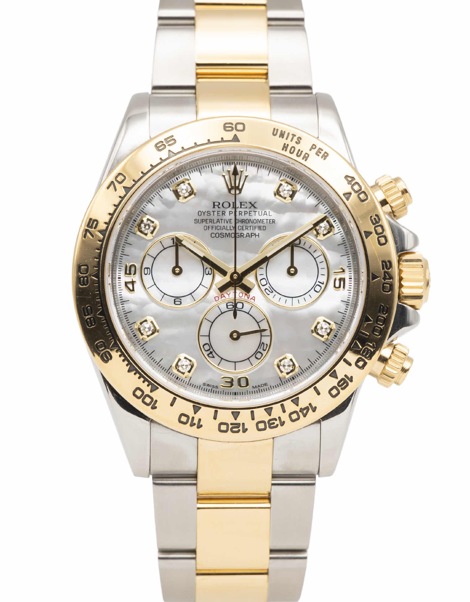 Discover the Rolex Daytona (2020), where innovation meets timeless style. Crafted in two tone yellow gold, its mother of pearl dial adds flair and functionality. With a 40Mm case, it effortlessly balances modern design and classic charm.