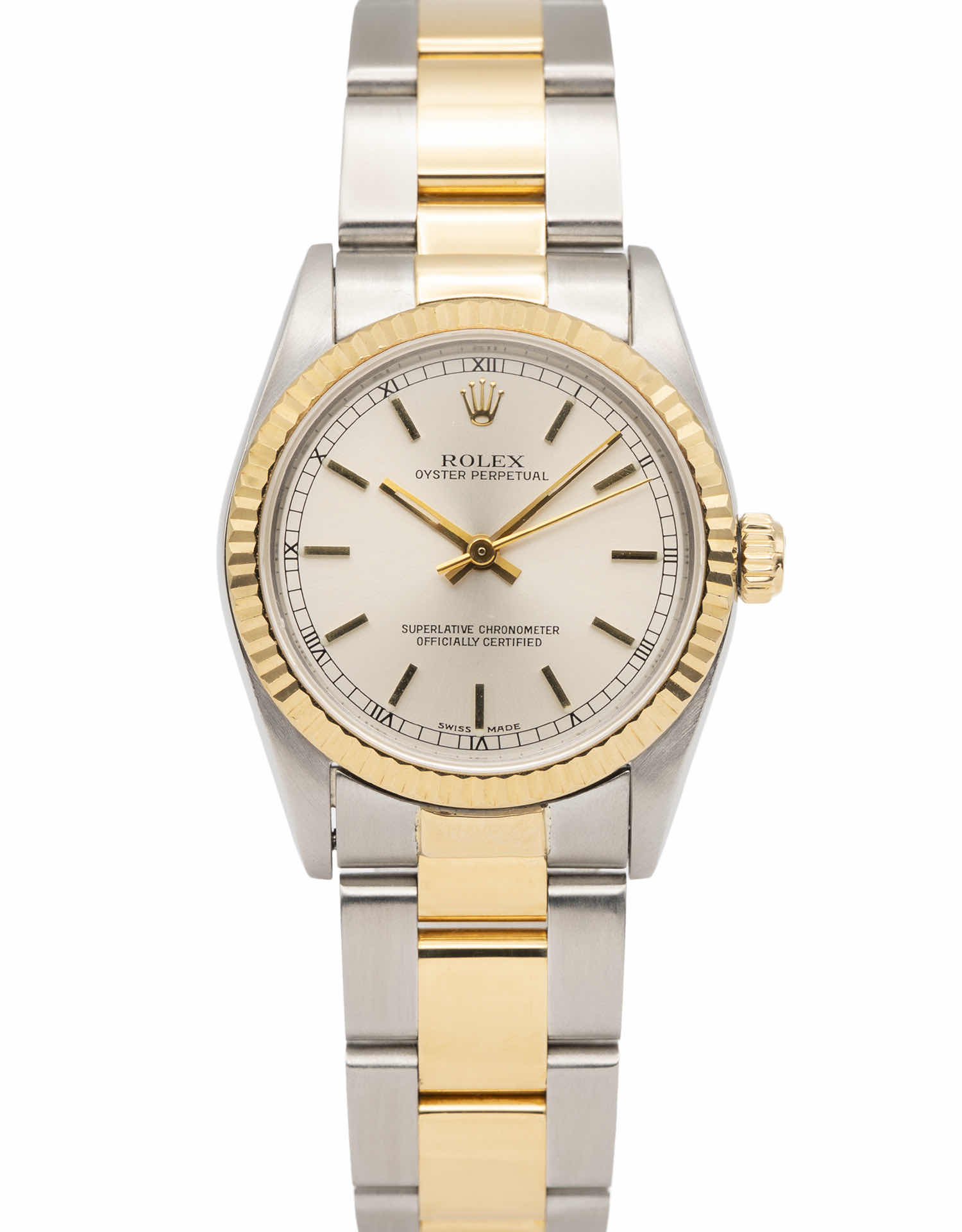 Discover the Rolex Oyster Perpetual (1995), where innovation meets timeless style. Crafted in two tone yellow gold, its silver dial adds flair and functionality. With a 31mm case, it effortlessly balances modern design and classic charm.