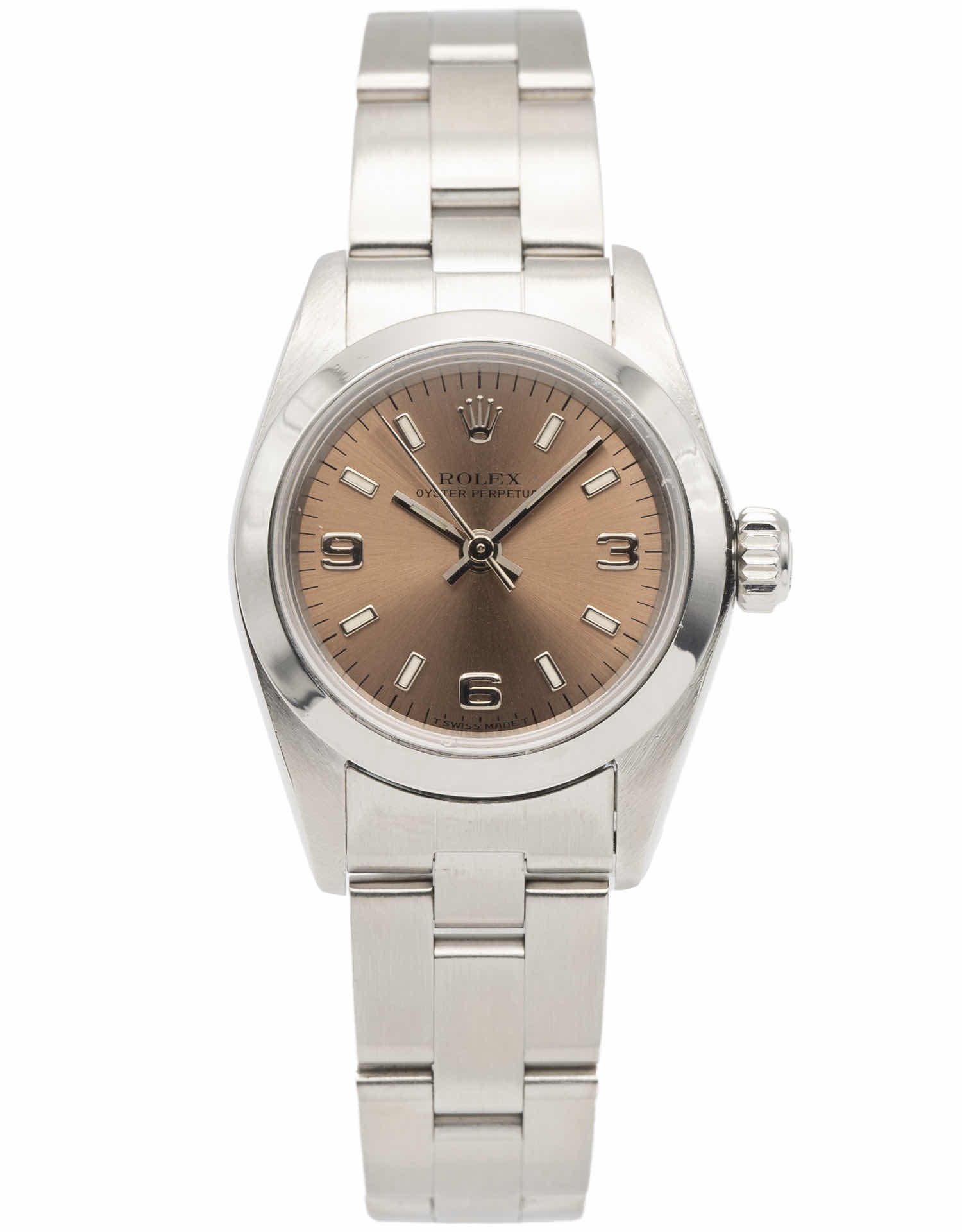 Discover the Rolex Oyster Perpetual (1999), where innovation meets timeless style. Crafted in stainless steel, its salmon dial adds flair and functionality. With a 26mm case, it effortlessly balances modern design and classic charm.
