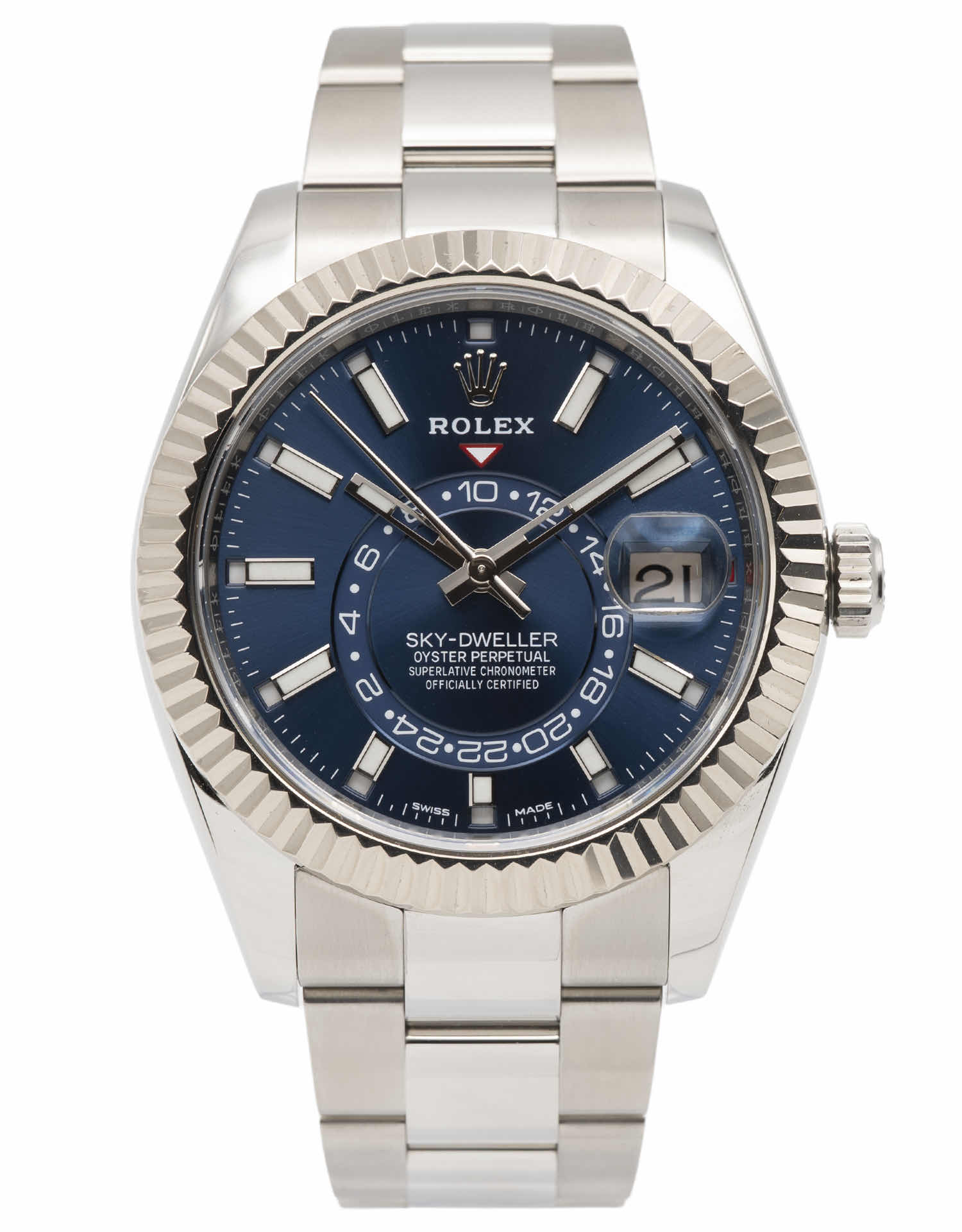 Discover the Rolex Sky-Dweller (2018), where innovation meets timeless style. Crafted in stainless steel, its blue dial adds flair and functionality. With a 42mm case, it effortlessly balances modern design and classic charm.