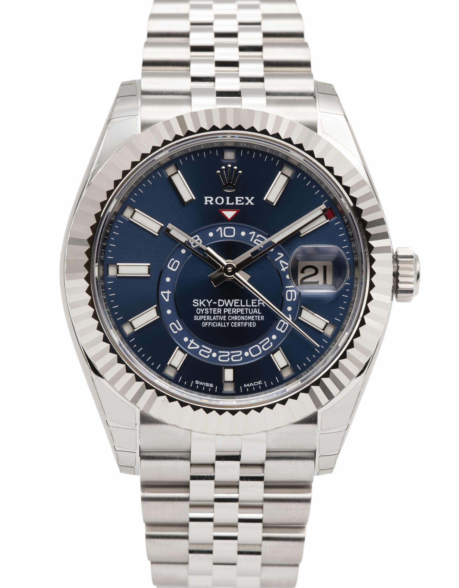 Discover the Rolex Sky-Dweller (2022), where innovation meets timeless style. Crafted in stainless steel, its blue dial adds flair and functionality. With a 42Mm case, it effortlessly balances modern design and classic charm.