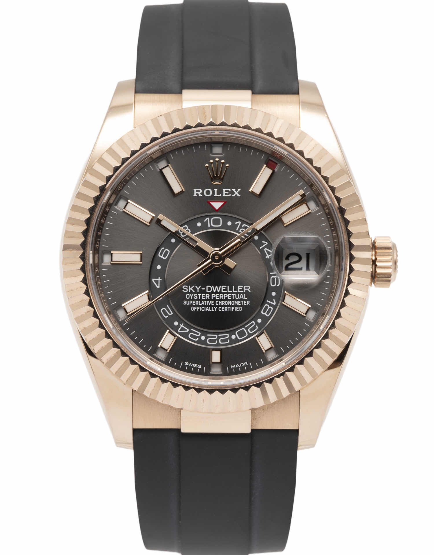Discover the Rolex Sky-Dweller (2022), where innovation meets timeless style. Crafted in rose gold, its grey dial adds flair and functionality. With a 42mm case, it effortlessly balances modern design and classic charm.
