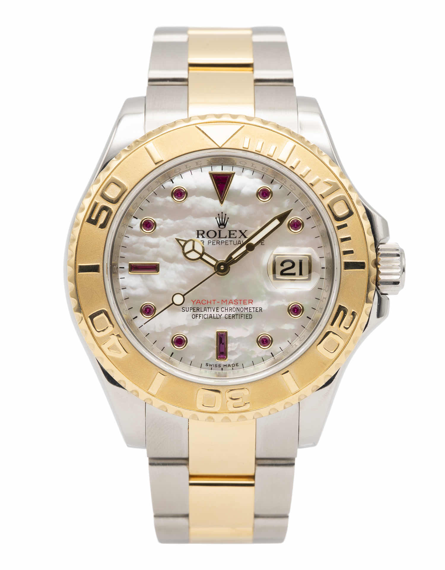 Discover the Rolex Yacht-Master 40Mm (2010), where innovation meets timeless style. Crafted in two tone yellow gold, its mother of pearl dial adds flair and functionality. With a 40MM case, it effortlessly balances modern design and classic charm.