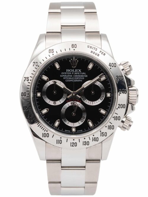 Daytona models are crafted from various materials, including Oystersteel, yellow gold, white gold, and Everose gold, as well as the luxurious platinum version. The bezels come in either a monobloc Cerachrom ceramic inlay or a precious metal finish, each offering different levels of durability and style. Buying a used Rolex Daytona can significantly reduce the waiting time often associated with new models and offers access to previous editions or rare configurations. Known for its investment potential, a pre-owned Daytona typically holds its value well, making it an excellent choice for collectors.