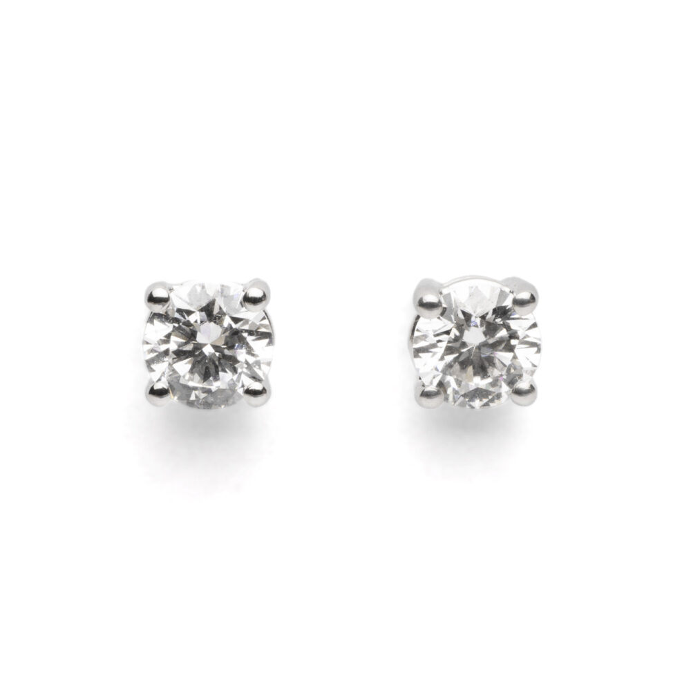A beautifully striking pair of stud earrings that combine refined design with exceptional brilliance. Each stud showcases a brilliant round diamond, totalling 1.40ct, set in lustrous platinum to enhance its sparkle and presence.