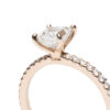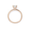 The soft blush tones of the rose gold perfectly accentuate the diamond’s natural radiance, creating a timeless yet contemporary aesthetic. Delicate and refined, this piece captures the essence of modern romance and enduring beauty.