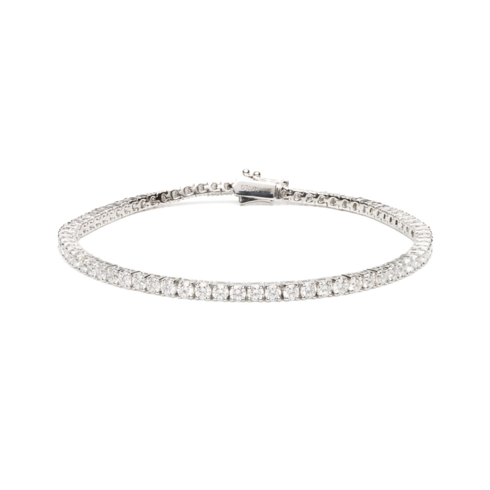 Timeless and refined, this classic tennis bracelet is crafted with brilliant round lab-grown diamonds, each securely set in an elegant four-claw setting. Designed in a straight line style, the bracelet highlights the continuous sparkle of the diamonds, creating a graceful and sophisticated look.