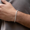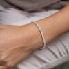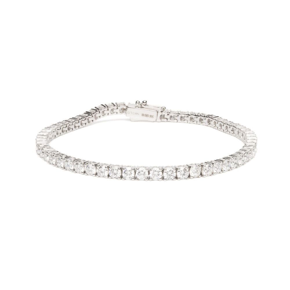 Timeless and refined, this classic tennis bracelet is crafted with brilliant round lab-grown diamonds, each securely set in an elegant four-claw setting. Designed in a straight line style, the bracelet highlights the continuous sparkle of the diamonds, creating a graceful and sophisticated look.