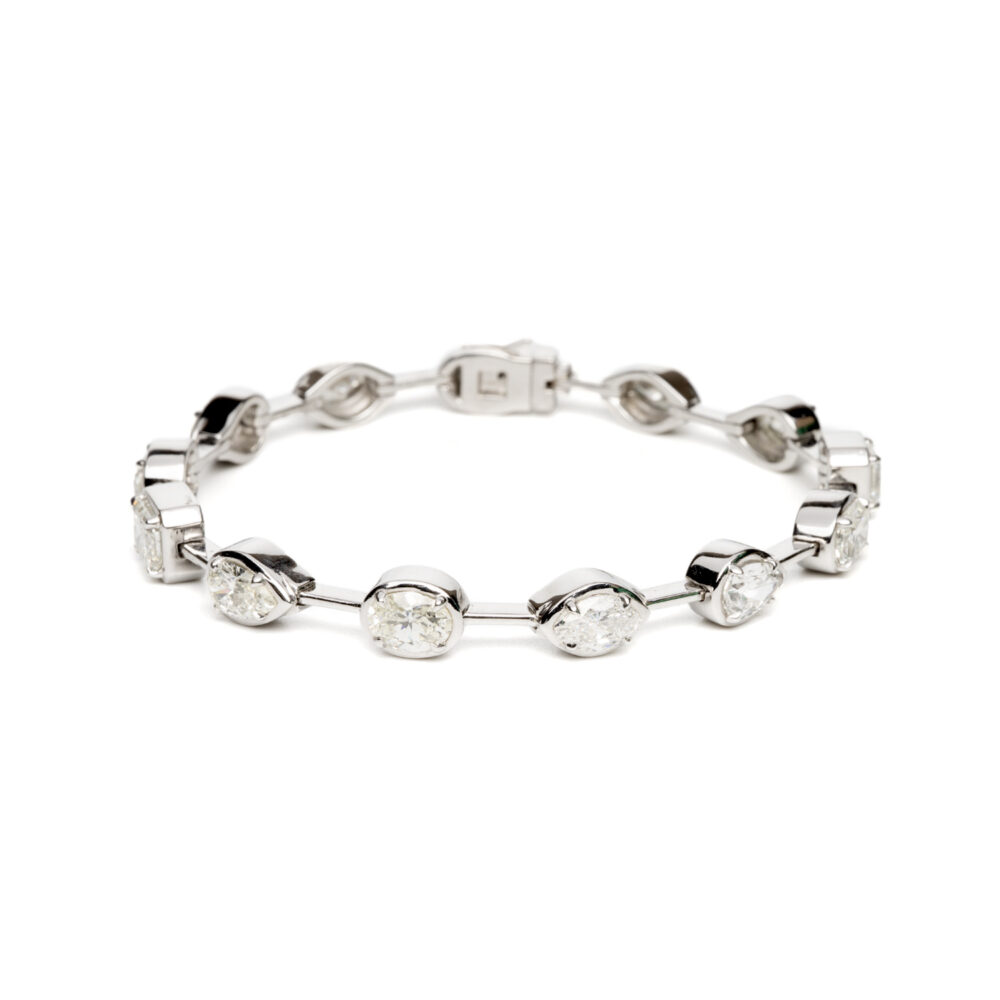Meticulously crafted from lustrous 18ct white gold, this exquisite bracelet features a harmonious arrangement of expertly selected diamonds that deliver exceptional brilliance with every movement. Each stone is set with precision to maximise light reflection, creating an elegant flow of sparkle across the wrist.