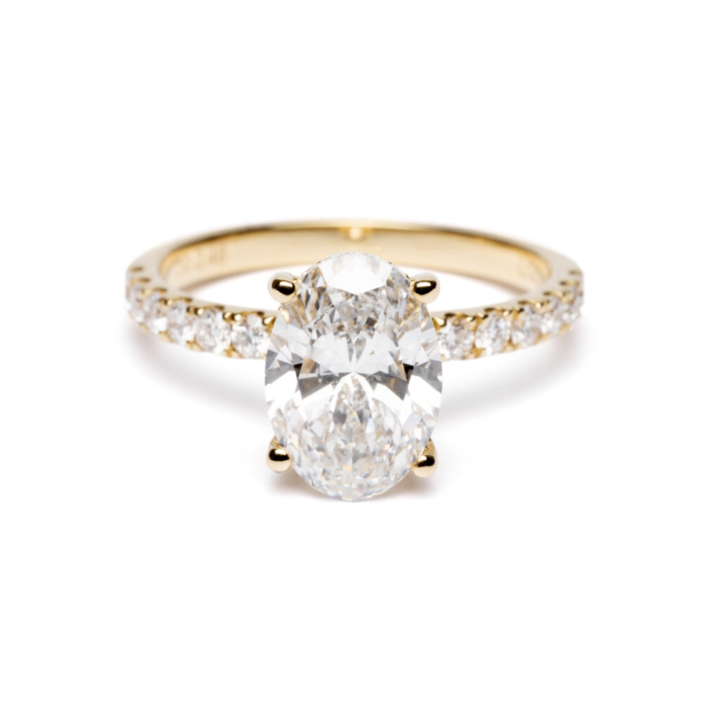 18ct Yellow Gold 2.02ct Lab Grown Oval Diamond Ring With Diamond Set Shoulders