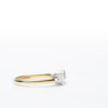 The oval centre diamond brings a balanced silhouette and luminous sparkle, while the pear shaped shoulders frame it beautifully and enhance the overall radiance. The warm yellow gold band adds classic charm and highlights the diamond’s fire and shine.