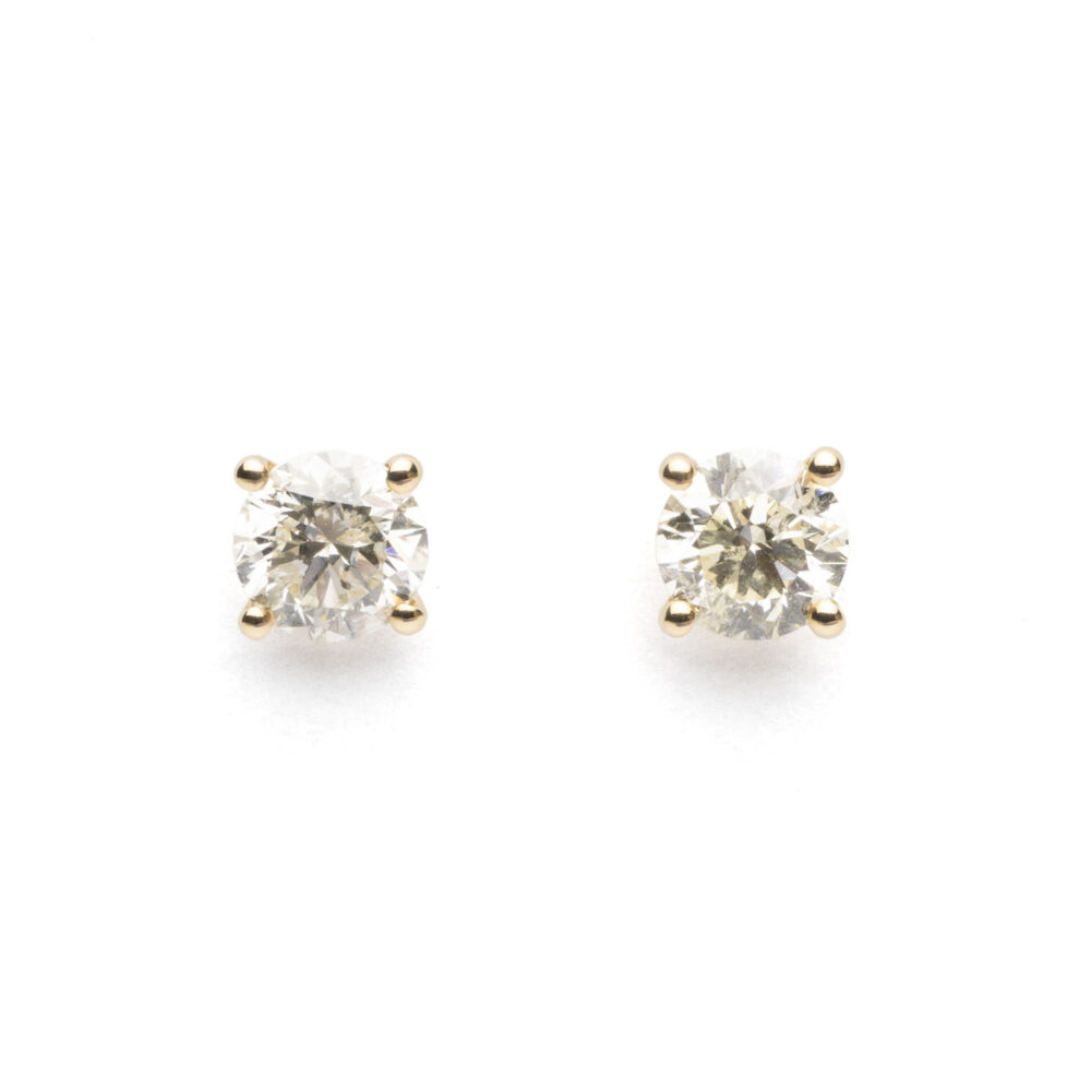 18CT Yellow Gold Single Stone Natural Diamond Studs
