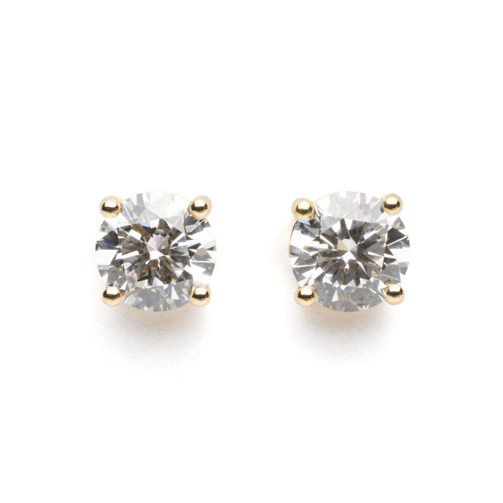 3CT 18CT Yellow Gold Certified Single Stone Lab Grown Diamond Studs