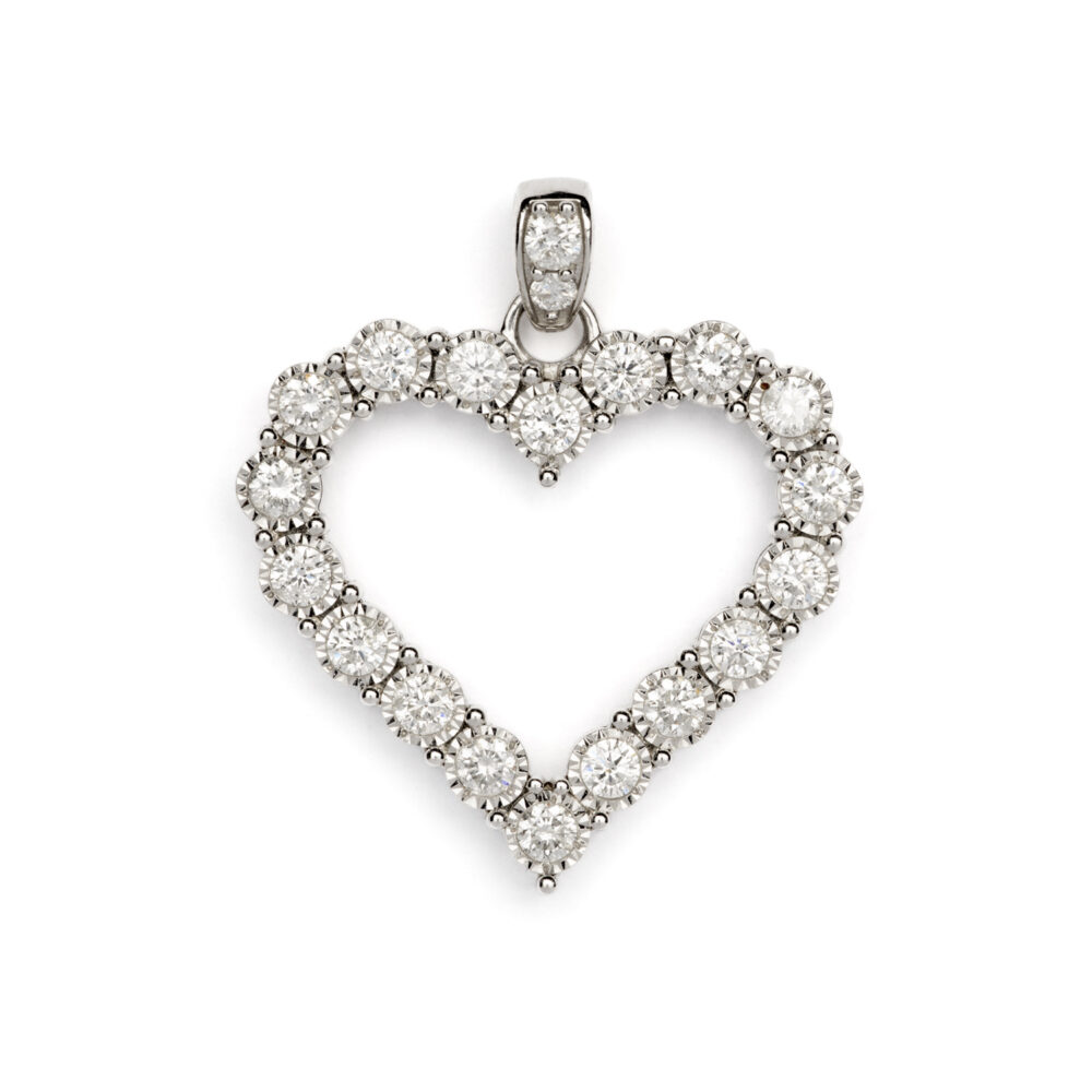 9ct White Gold Natural Diamond Heart Pendant 1.00ct