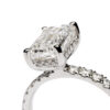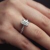Designed to shine from every angle, the centre diamond is enhanced by finely set diamonds along the shoulders, adding extra sparkle and allure. A hidden halo beneath the main stone further intensifies the ring’s radiance, creating an enchanting interplay of light that draws the eye with subtle sophistication.