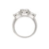 Crafted in polished platinum, the design offers a harmonious fusion of classic form and contemporary refinement. The trio of stones symbolises the past, present, and future — a timeless expression of enduring love and commitment.