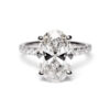 Platinum 3ct Lab Grown Oval Diamond Ring With Diamond Set Shoulders & Hidden Diamond Halo
