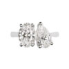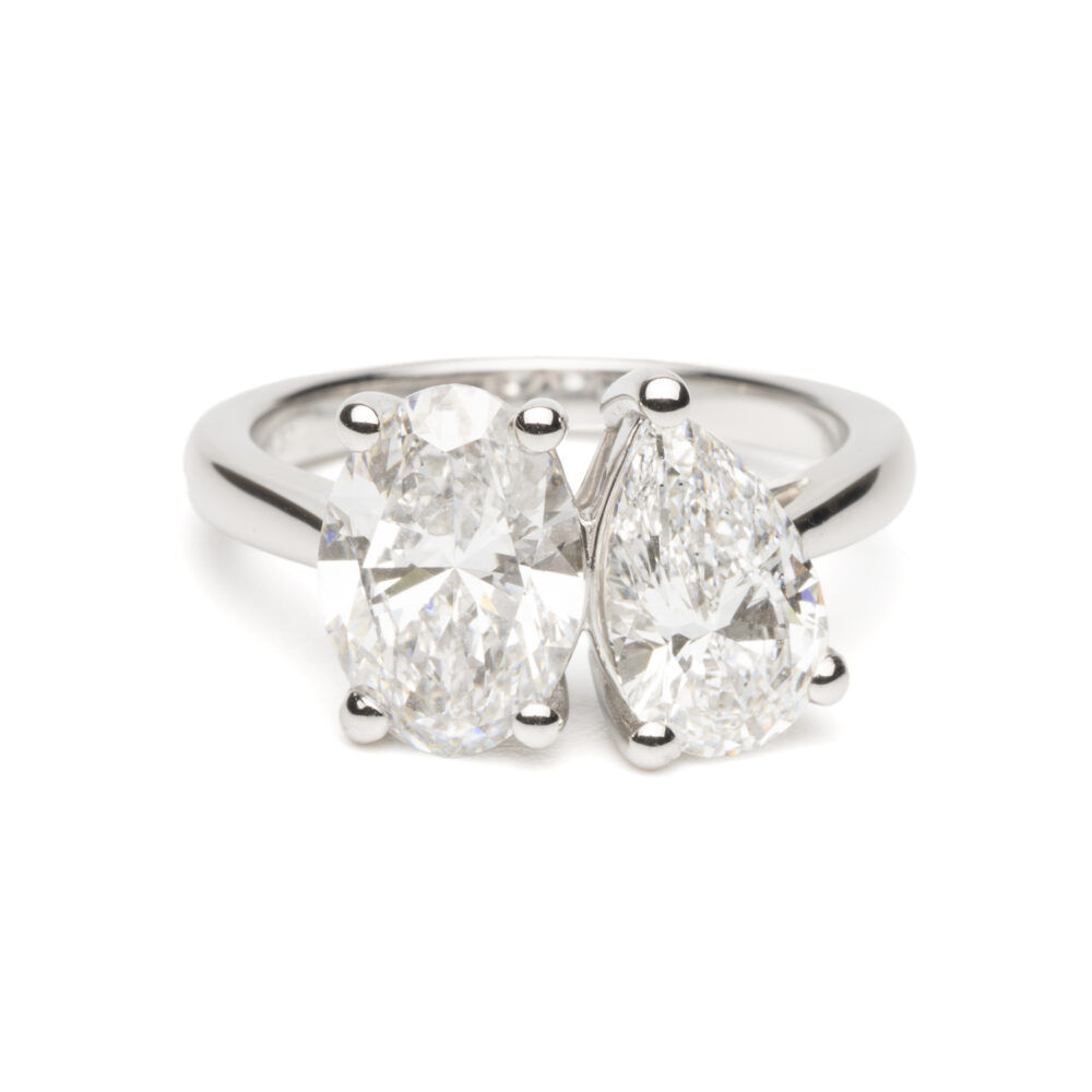 Platinum Dual Lab Grown Diamond Ring With An Emerald And Pear Next To One Another
