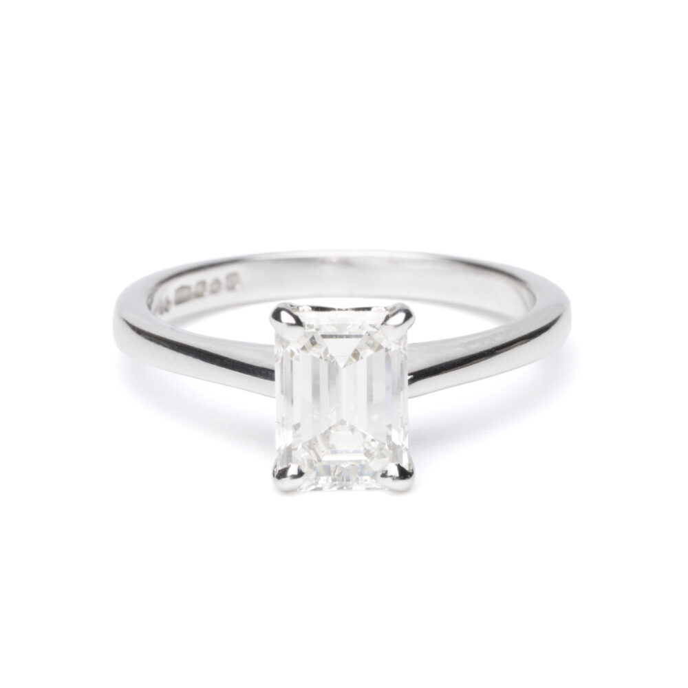 Platinum Four Claw Single Stone 1.14ct Natural Emerald Cut Diamond Ring