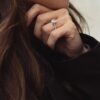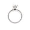 Encircling the centre stone and enhancing its luminosity is a hidden halo of smaller dazzling diamonds. This subtle halo isn’t immediately visible from above, but from the side it adds depth and glow, maximising the overall sparkle and creating a captivating play of light around the centre stone.
