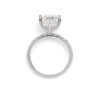 Set upon a refined platinum band, this striking centre stone is flanked by diamond set shoulders that add extra brilliance and sophistication. A subtle hidden halo beneath the centre diamond enhances its radiance from every angle — delivering both visible sparkle and hidden depth, perfect for someone who appreciates thoughtful details and exquisite design.