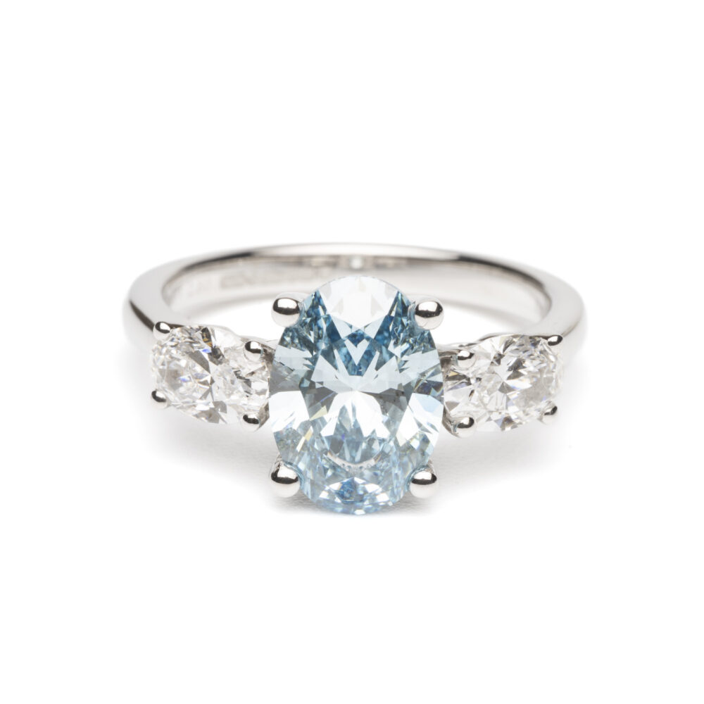 – Centre Diamond: Lab-grown oval cut, 2.00 ct