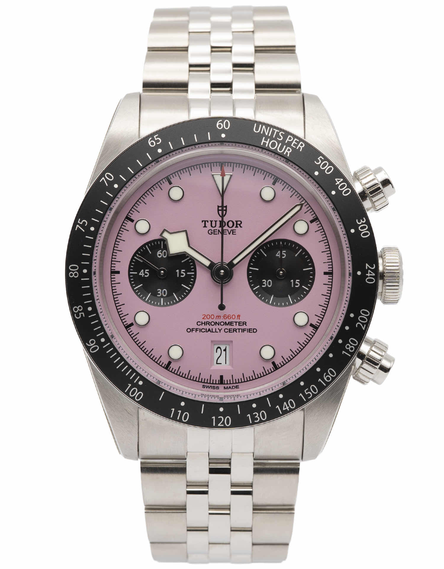 Discover the Tudor BLACK BAY CHRONO (2025), where innovation meets timeless style. Crafted in stainless steel, its pink dial adds flair and functionality. With a 41mm case, it effortlessly balances modern design and classic charm.