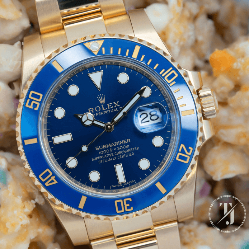One of the Submariner’s most distinctive features is its bracelet. The Oyster bracelet, known for its strength and comfort, is equipped with an Oysterlock clasp to prevent accidental opening, and the Glidelock system allows for fine adjustments without the need for tools.