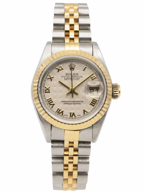 The Datejust 26 includes the iconic date display at 3 o'clock, magnified by the Cyclops lens integrated into the sapphire crystal. Its 26mm case is delicate yet durable, suitable for a smaller wrist. Powered by Rolex's automatic movement, it maintains accurate timekeeping and reliability, which is synonymous with the brand. Its dial options, available in a variety of colours and materials, provide a wealth of choice to match individual style preferences. The Datejust 26 is available in numerous combinations, from stainless steel to Rolesor (a combination of gold and steel), and comes with various bezel choices, such as smooth, fluted, or gem-set. All these variations offer different appeals, from a steel model's understated elegance to a diamond-set bezel's luxurious sparkle.