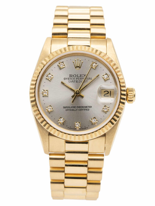 The Rolex Datejust 31 is a firm favourite within the Datejust family. It offers flexibility and an ideal wrist presence for many wearers, bridging the gap between the smaller and larger models. The Datejust 31 merges tradition with contemporary elegance. The Datejust 31 combines a 31mm Oyster case with the emblematic date feature graced by a Cyclops lens. The model is powered by cutting-edge Rolex movements, which ensure precise timekeeping. An array of dial options enhances its versatility, ranging from classic Roman numerals to modern diamond hour markers. The refined balance of size, functionality, and style makes the Datejust 31 a preferred choice for those who appreciate subtle sophistication.